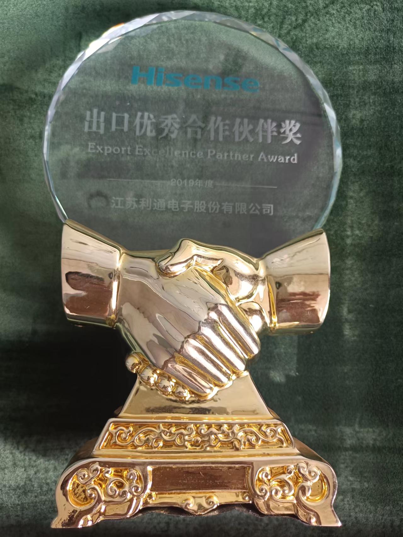 被授予海信2019年度“出口优秀合作伙伴奖”